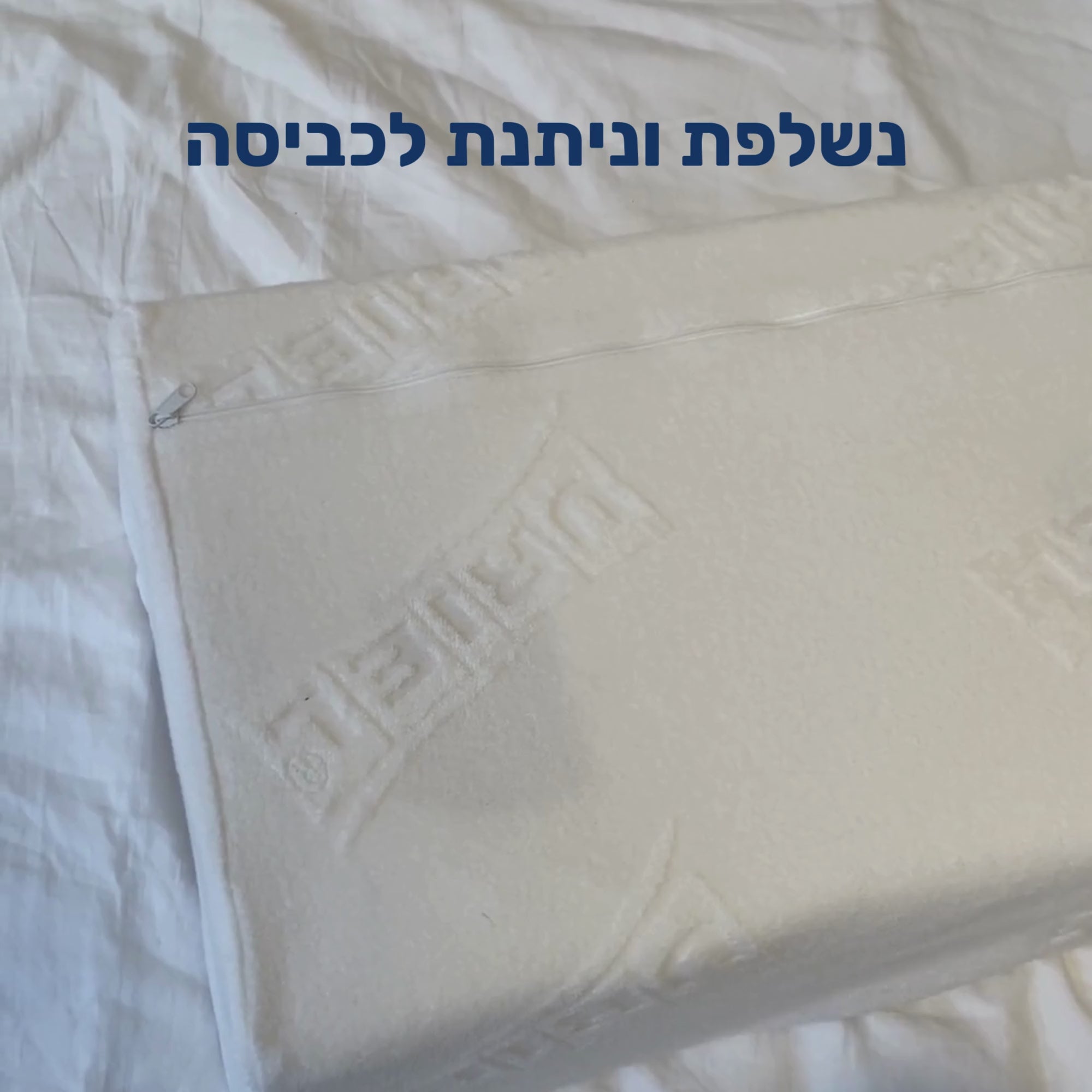 הכרית מגיעה עם ציפית נשלפת וניתנת לכביסה, עשויה כותנה, בד מגבת אלסטי, אנטי-אלרגני, רך ונעים למגע.